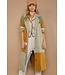 Designed in button down, oversized fit, tunic jacket in contrast twill and textured knit with trim, frayed edge and color blocking on entire garment.